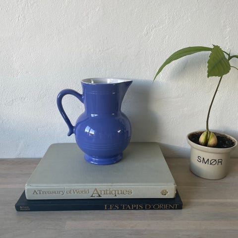 Lyseblå vase og hvid kande i keramik