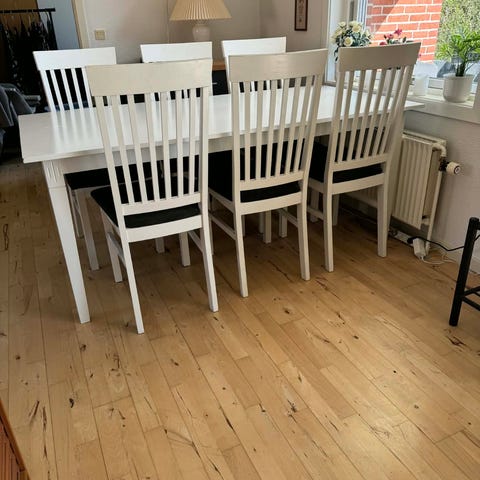 Enkelt bord med 4 stole inkl ekstraplade
