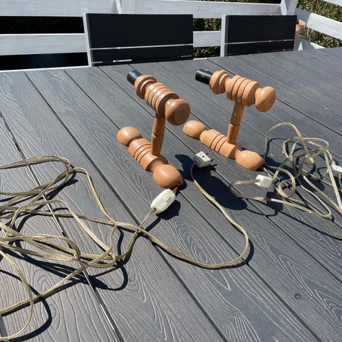 Gamle lysegrønne væglamper i træ