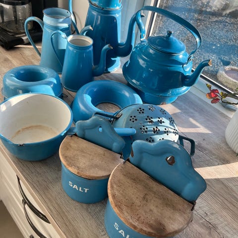 Original madame blå emalje bageforme/buddingeforme – sæt med 4 stk