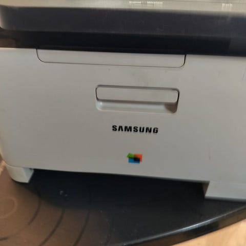 Samsung printer, scanner og kopimaskine i én, sort/hvid.