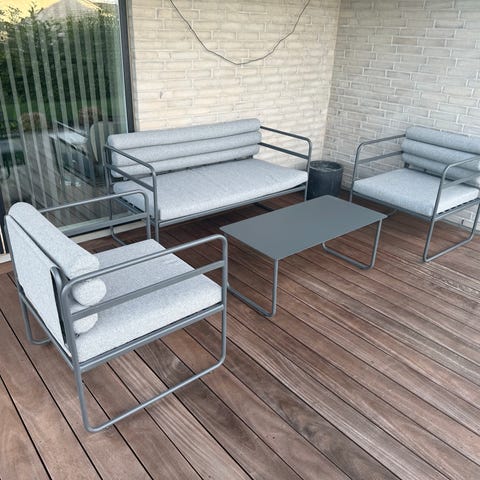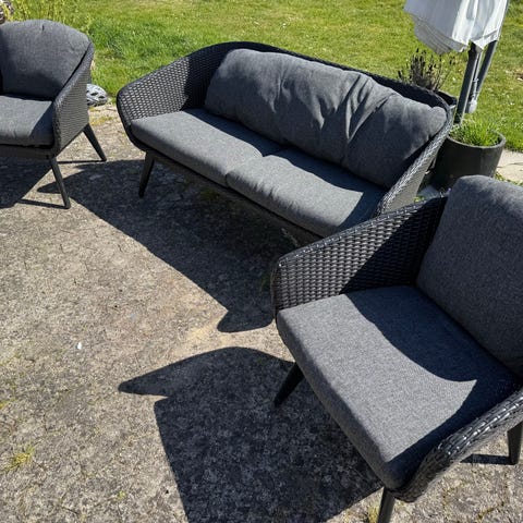 Longe havesæt Ilva sofa + 2 stole. Hynder trænger til en vask og stel til olie og efter spænding. (Ekskl borde)