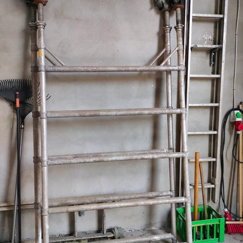 Halvt år gammel multistillads 6-i-1 alu stillads med hjul