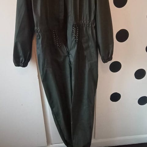 Super dejlig vind- og vandtæt jumpsuit. Perfekt til hundeluftere. Masser af lommer, reflekser og fløjte. Kun brugt en enkelt sæson.