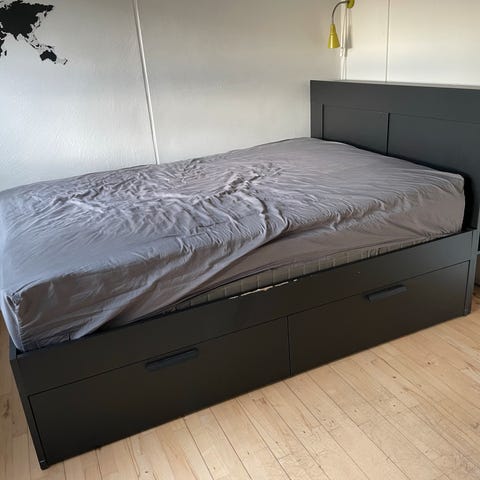 Brugt i mange år. God stand. Med mange klistermærker på sengen.