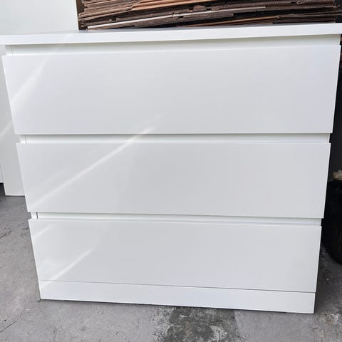 Malm kommode fra IKEA. Der er synlige brugsspor, men betyder overhovedet ikke noget for funktionen. Se alle billederne. Skufferne virker som de skal.
