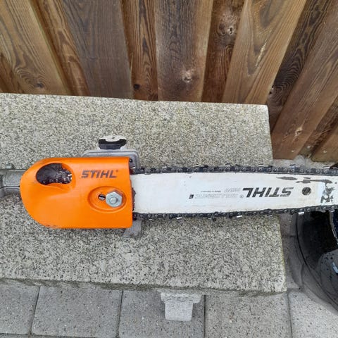 Stihl MS 211 C-BE benzinkædesav med kædestramning i siden og kædeskjold.