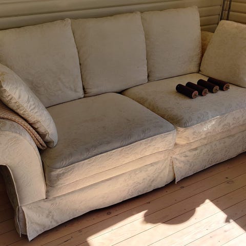 Sofa med synlige skjolder men fantastisk at sidde i. Gives væk til hurtig afhentning. Smides ud onsdag