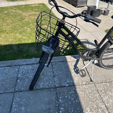 Sco Premium E-MR elcykel i sort med batteri bagpå og bagagebærer. Har støtteben, skærme og komfortsadel, klar til hverdagskørsel.