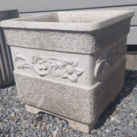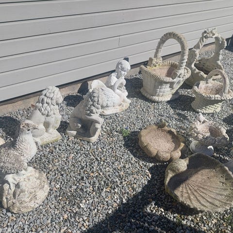 Æsel med krukker på siden, har revnet øret 90 cm høj.