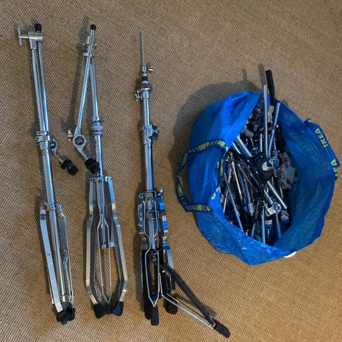 Diverse mikrofonstativer, blandt andet et K&M. Brugsmærker og en smule rust her og der, men alle fuldt funktionelle og stabile. Millennium nodestativ i flot stand, med få brugsmærker. Sælges kun samlet. Skal afhentes på adressen.