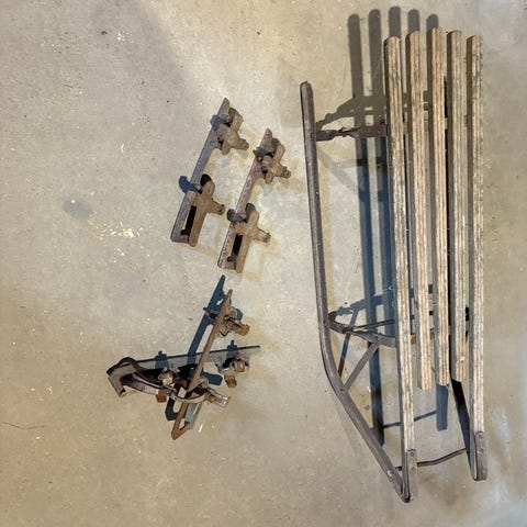 Cirka 56,5cm lang, 23cm høj og ca 0,5cm bred. Med patina.