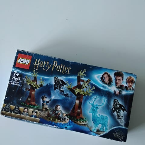 LEGO Harry Potter sæt med flere minifigurer, hippogriff og små skovscener med træer. Der er forskellige små platforme med lysklodser og et edderkoppespind som kan stilles op på flere måder.