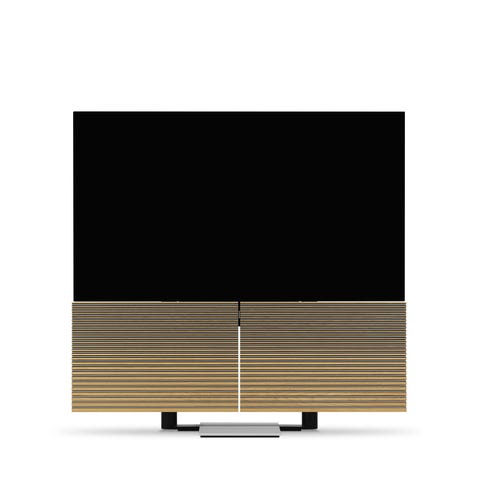 BeoVision Harmony med motordrejestand, med træpaneler. Prisen er med en LG GX men for 105.000kr. Så kan det købes med et G5 panel i stedet. På billedet er det med et G5 panel.