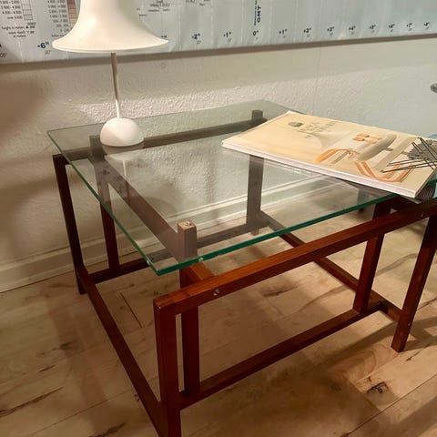Sidebord i glas og crome/messing