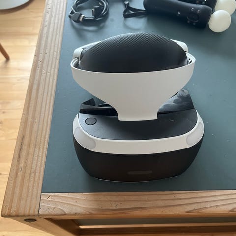 Sony PlayStation VR til PS4 med sort/hvidt headset. Med kamera, to Move controllere og kabler som på billederne. Sender ikke. Fast pris