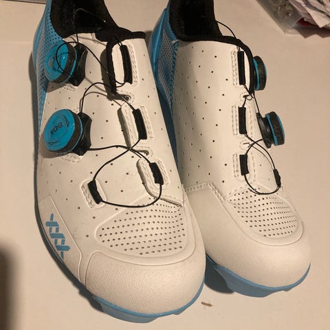 Helt nye Shimano XC700 cykelsko. Et fejlkøb, kvittering medfølger. Ny pris 1399 kr. Der medfølger et sæt nye SPD clamps.