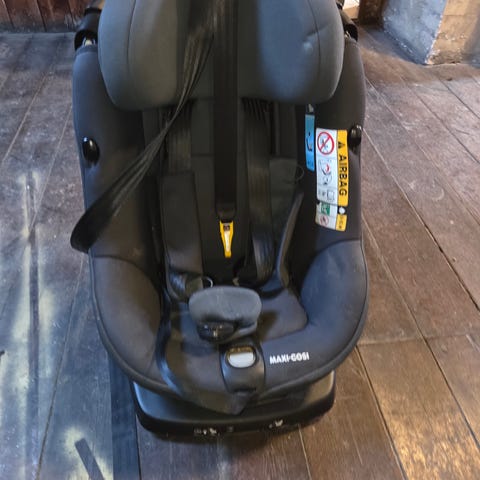 Maxi-Cosi autostol i str 36 med sort og gråt betræk. Har justerbar ryglæn/nakkestøtte og isofix-base.