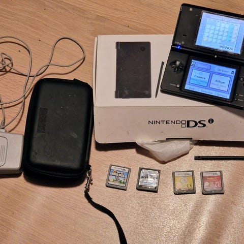 Nintendo DS Lite i sort med to skærme og klassiske knapper.