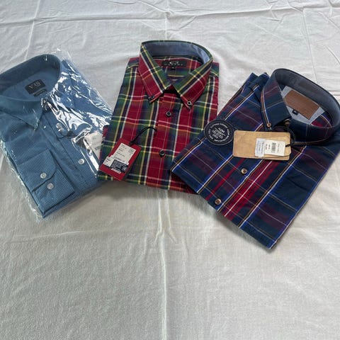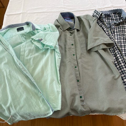 3stk kortærmet herre skjorter i blå og hvid og ternet