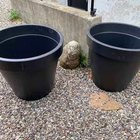 Hay urtepotte, sort, stor, nu kr. 100,-. Den mellem grå, kr. 75,- og den lille kr. 50,- nu.