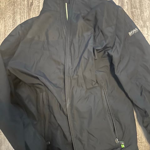 Sort Under Armour jakke i str L i polyester. Har lynlås foran, lynlåslomme på brystet og lommer i siderne.
