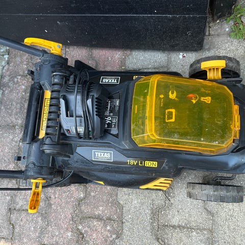Sælger et praktisk Texas batteri-havesæt, bestående af både græstrimmer og kanttrimmer. Begge maskiner er brugt i 1 sæson.