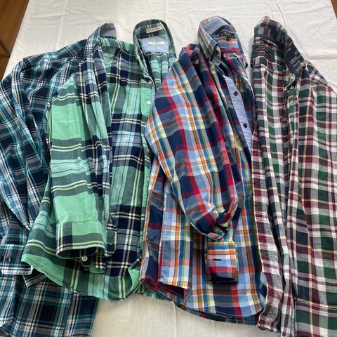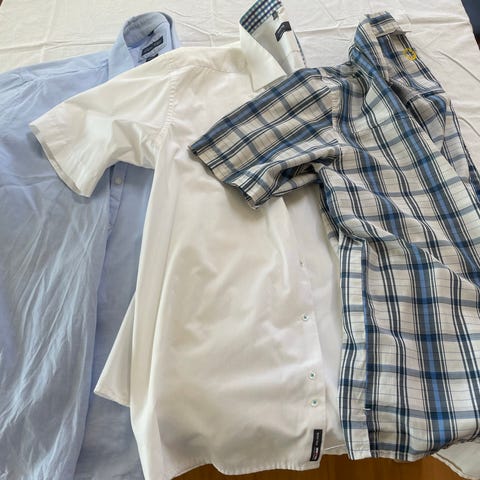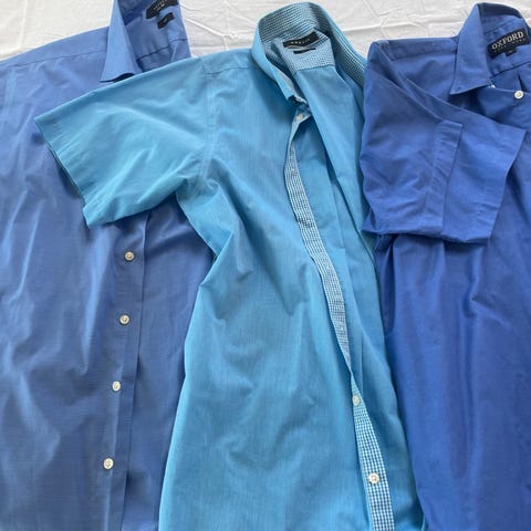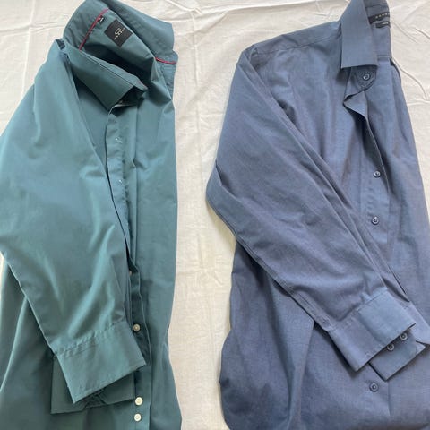 4stk langærmet herre skjorter i blå. Kan købes individuelt for 25kr stykket, pris for alle 4 er 80kr.