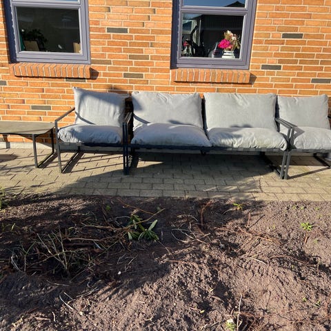 Grå udendørs sofasæt med hynder