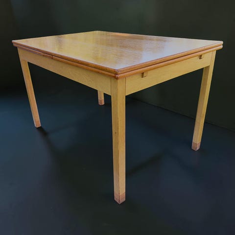 Multifunktionsbord teak/eg – Ejner Larsen, skjult rum & original mærkat