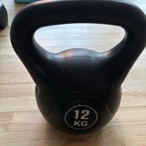 Sort kettlebell på 8 kg i støbejern. God til træning derhjemme eller i hjemmegym.