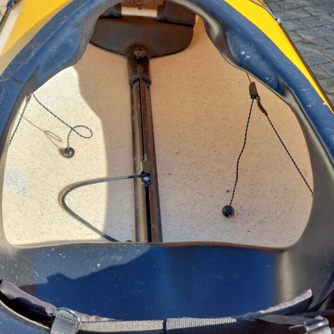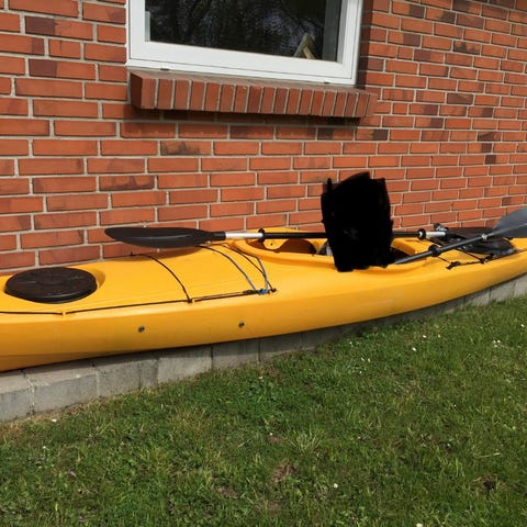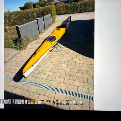 To havkajakker sælges samlet, en rød og en grøn, begge med sæde, ryglæn ror. De har opbevaringsluger for og bag samt elastiknet og liner på dækket.