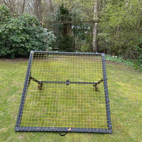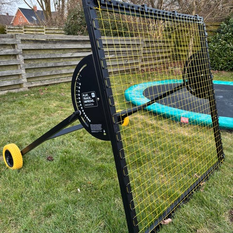 Sælger denne robuste Munin Sports fodbold rebounder i metal med tilhørende net. Rebounderen er udstyret med en praktisk vinkelskala i siden og et solidt låsegreb, der gør det nemt at justere hældningen, så den kan tilpasses præcis til de typer afleveringer og skud, man ønsker at træne. Takket være de monterede hjul på stellet er den utrolig nem at flytte rundt på både træningsbanen og hjemme i haven. Det er et ideelt redskab til effektiv træning af boldkontrol, pasninger og skud for både børn og voksne. Den er brugt, men fremstår i rigtig fin stand og er helt klar til brug.