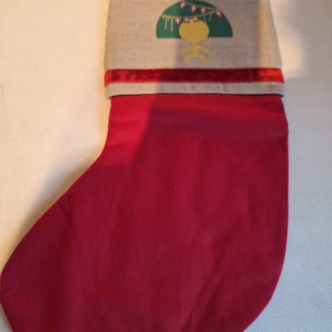 Julestrømpe filt rød kristtjørn bjælder