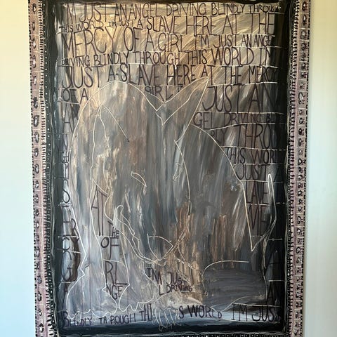 Abstrakt maleri af Hørning fra år 2000 i sort/hvid nuancer med kraftig sort ramme. Der er ophængswire bagpå, så det er lige til at hænge op på væggen. Sælges. kr. 6500