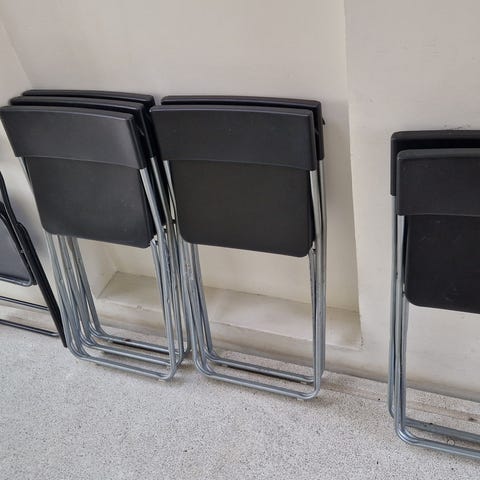 6 klapstole sælges grundet flytning de virker som de skal men skal nok lige have lidt rens da de er blevet lidt beskidte af at have stået i vores skur. Prisen er dog sat efter det og det prisen er 150 for dem alle.