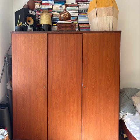 Flot garderobeskab i teak. 2,3m højt 2,3 bredt, ca 80cm dybt.