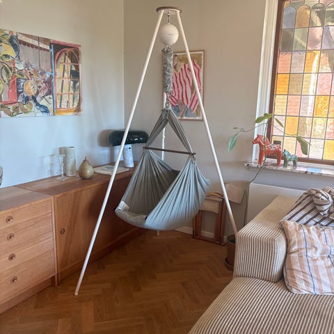 Slyngevugge, vuggemotor og stativ.