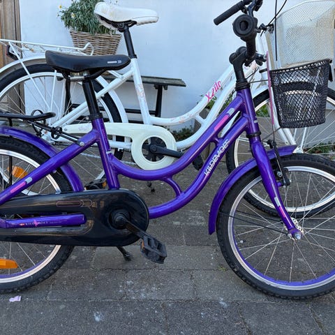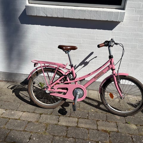 Rigtig fin pige kildempse cykel “20” . 3 gear, meget pæn stand , har lidt ridser men ellers står den flot ( se billeder). Den har lås og en nøgle medfølger . Der er forlygte og baglygte monteret på .