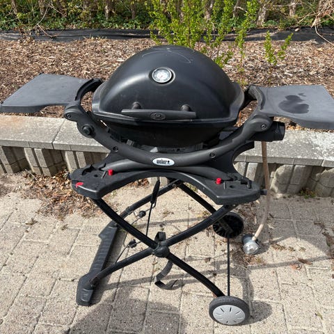 Weber Q gasgrill på stativ med sideborde