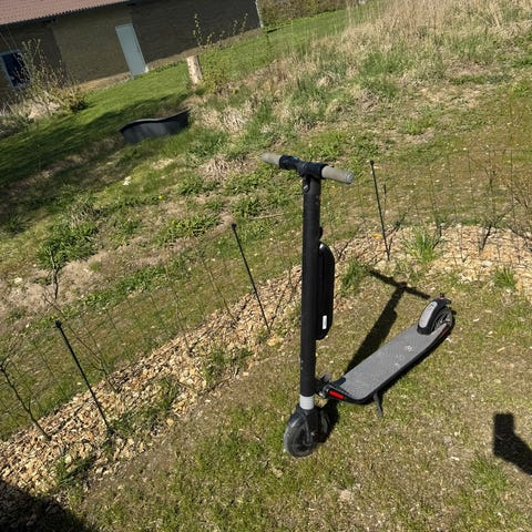 Løbehjul i sort og grøn med justerbar styrhøjde. Har to hjul og fodplade med skridsikkert felt. Byd selv skal væk hurtigst muligt