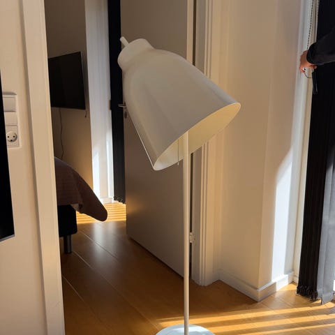 Hvid bordlampe med glasskærm