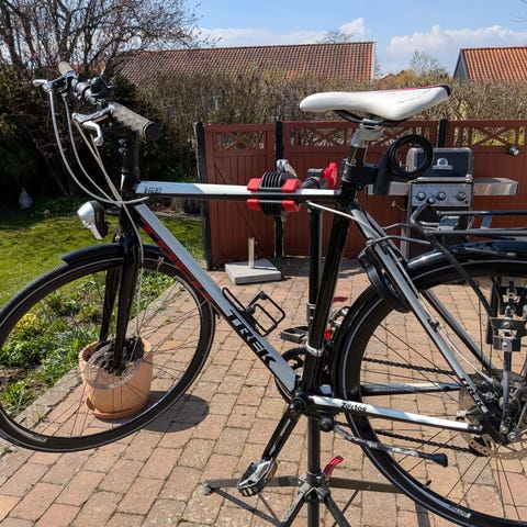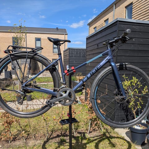 Monteret med Continental punkterfri dæk, som nok stadig har et år eller to i sig.
