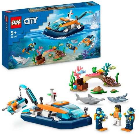 Børn fra 7 år kan tage på haveventyr med LEGO® City byggesættet Kystvagtens redningsbåd og helikopter (60504). Båden kan flyde og har masser af funktioner og detaljer samt aftagelige dæk og giver nem adgang til leg på skibets kontrolbro, i soverummene og i køkkenet. Børn kan søsætte en redningsjolle fra rampen eller flyve fra bådens helikopterlandingsplads i en cool helikopter. Legetøjssættet omfatter endnu en jolle, LEGO flammer, 5 minifigurer og en hundefigur til sjov leg og historiefortælling. Alle 3 både kan flyde.