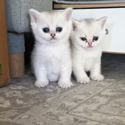 Vi har 2 søde British Shorthair hun-killinger til salg. Killingerne er født 20. marts 2026 og vokser op i et kærligt hjem sammen med børn, så de er vant til hverdagens lyde og meget menneskelig kontakt.
