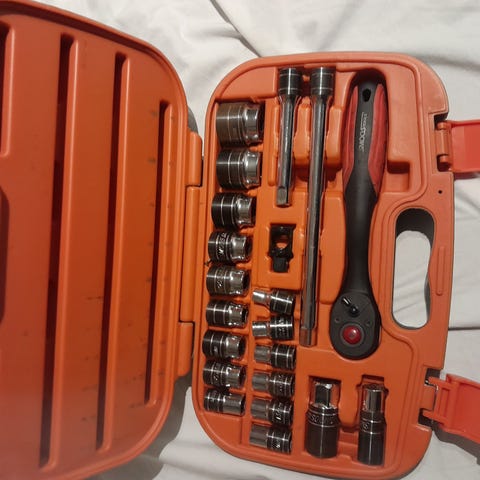 Stort topnøglesæt 1/2 tomme med amerikanske størrelser. Aldrig brugt. Kan sendes til pakkeboks. Nypris over 1000dkk.