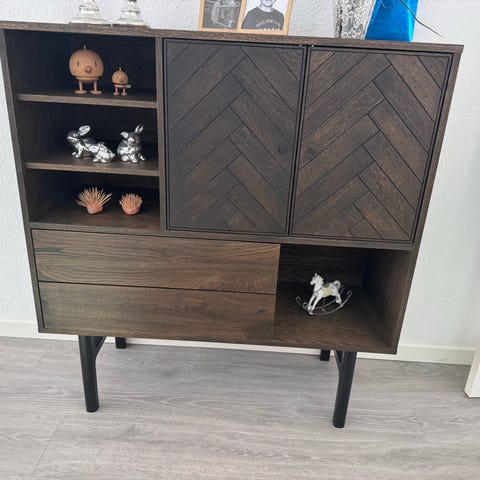 Sideboard Living Room with 4 Drawers and 2 Cabinets, 120 x 38 x 75 cm, Wood Colour + Black