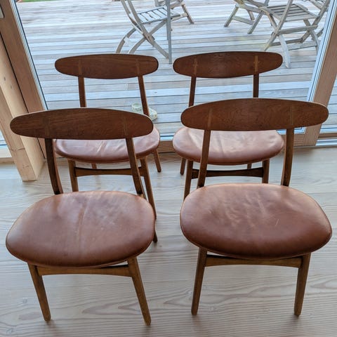 Cognac anilin læder - ompolstret v professionel. 4 stk. 2000kr pr stol