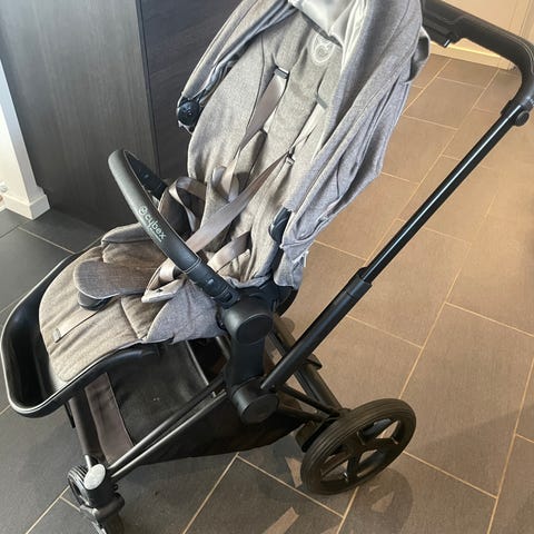 Bugaboo kombivogn med en masse ekstraudstyr og stor kaleche i farven grey melange og sort stel. Har altid stået indenfor, når den ikke har været i brug. Kører super godt og fungerer upåklageligt.