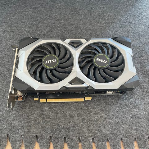 Sælger mit Gigabyte GeForce RTX 2060 Windforce OC 6G (GV-N2060WF2OC-6GD). Kortet har siddet i min egen PC og har kørt upåklageligt – ingen artefakter, ingen crashes, ingen problemer. Pillet ud i forbindelse med omdannelse til hjemmeserver.